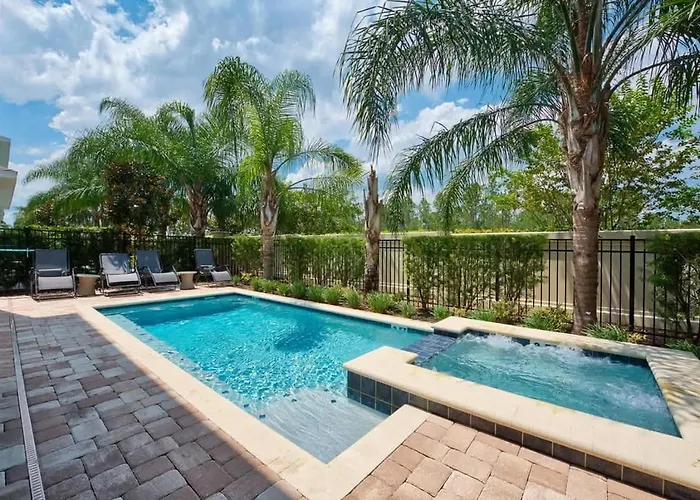 The 7-bedroom Elegant 8Br Encore Resort Pool W Spa Gameroom Single Family Orlando villa is situated only a 5-minute walk from Orlando Tree Trek Adventure Amusement Park Zip Line, featuring such comforts as Wi-Fi and parking. Guests can enjoy cycling at the holiday home, located 7 km from the Avatar Flight of Passage.
